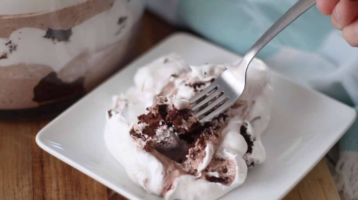 You can eat it right away if you'd like, but it really is better after chilling for 6-8 hours. This gives the brownies time to soften and meld with the layers of cream and pudding. My angel food berry trifle is another dessert that is better with time.